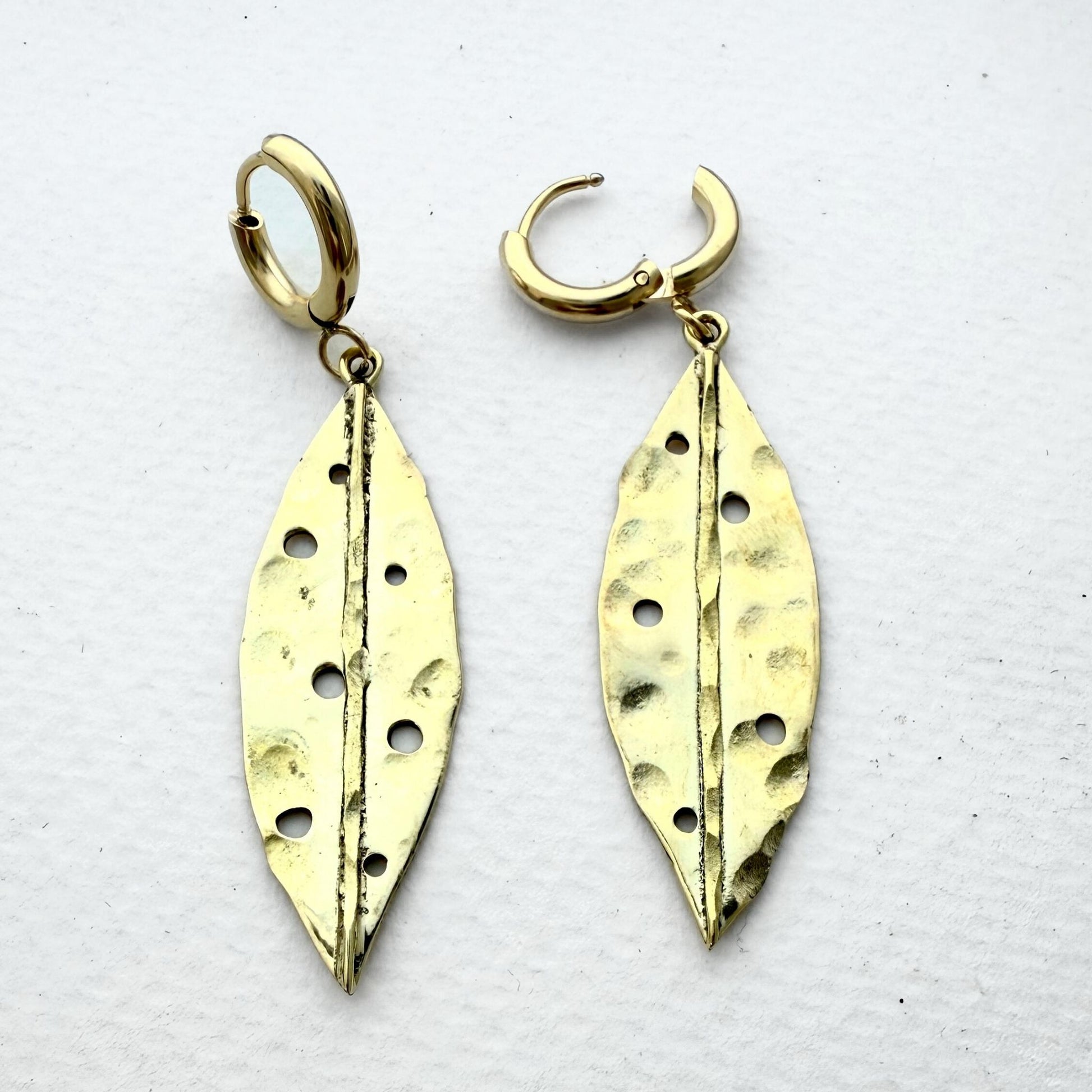 Pohutukawa Leaf Earrings - Hammered Recycled Brass